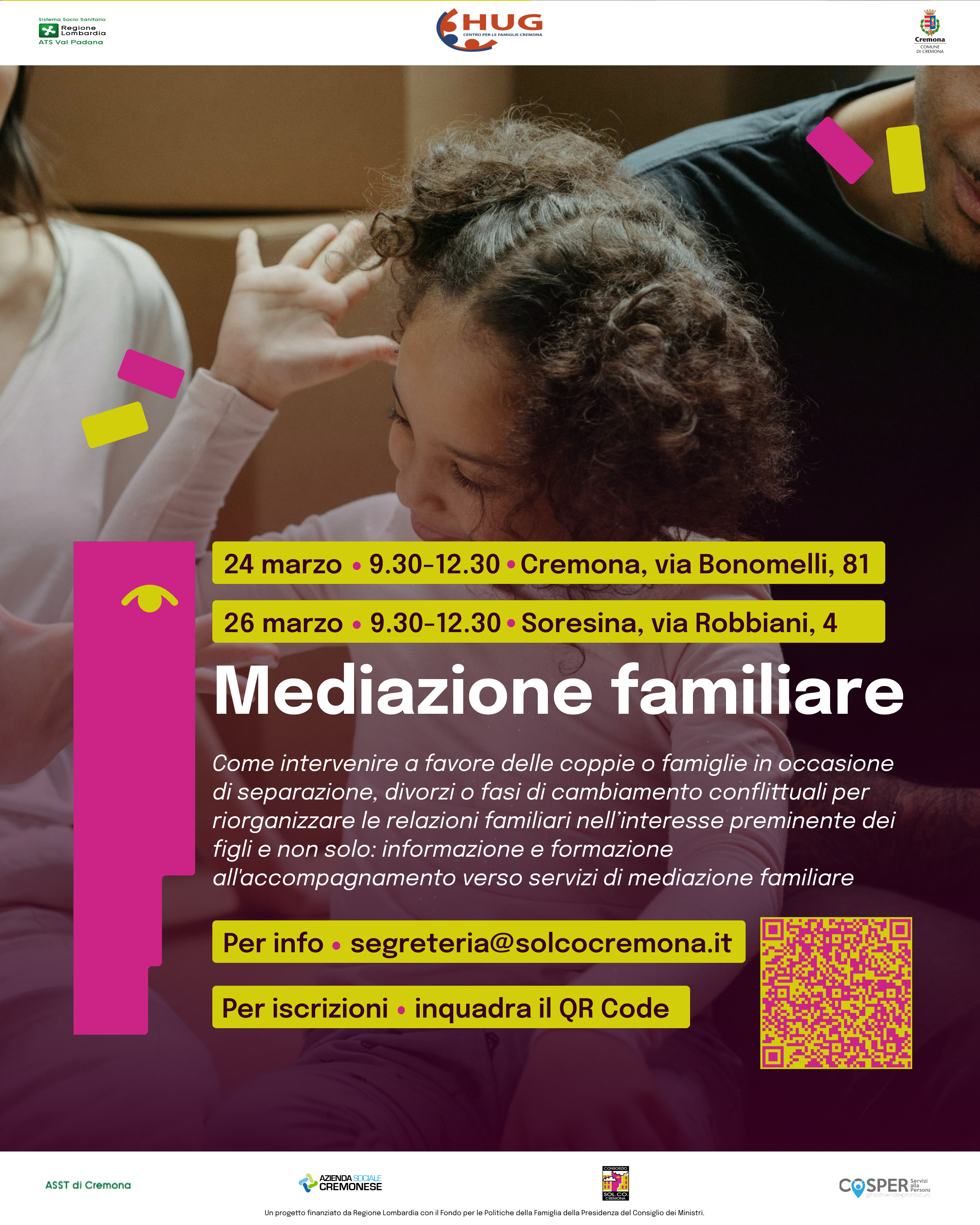 Descrizione MARTEDÌ 24 MARZO DALLE 9:30 ALLE 12:30 - CREMONA VIA BONOMELLI 81 GIOVEDÌ 26 MARZO DALLE 9:30 ALLE 12:30 - SORESINA VIA ROBBIANI 4 .